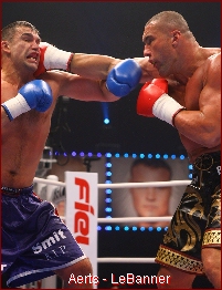 LeBanner the southpaw got the best blow through in a tepid first, snapping Aerts' head back with a right straight punch. In the second LeBanner came alive with the fists, backing Aerts onto the ropes and finding his spots with deadly precision. Aerts' low and middle kicks were not enough here, as LeBanner began to take charge.