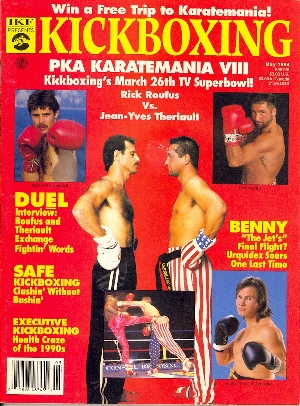 FROM BLACK BELT MAGAZINE One Canadian sportswriter has described Jean-Yves Theriault's fighting style as "charming." But ask any of Theriault's numerous victims (when their heads stop ringing, of course), and they'll tell you there is nothing at all charming about fighting the hard-hitting Professional Karate Association (PKA) middleweight champion. The 28-year-old Theriault has won 38 of his 41 professional full-contact karate bouts (at this writing) 34 by knockout. He has won 26 straight fights, taking the PKA middleweight crown from Robert Biggs in November of 1980 with a one-round TKO. Theriault went 8-0 last year in defense of his title, and was undefeated in six fights through October of '83, with three more scheduled before the end of the year. He obviously likes to stay busyand make money. Or maybe he just likes to punish other full-contact fighters. He does it often enough. Whatever Theriault's reasons for fighting so often, his success is hard to ignore. Few fighters can boast of going 14-0 (most likely 17-0 in the conclusion of 1983) their entire careers, much less over the course of two years. There's little doubt Jean-Yves Theriault deserves the honor of being the first BLACK BELT Hall of Fame Full-Contact Fighter of the Year. It's not just Theriault's record and fighting ability that warrant him such an award. It's also his demeanor, both in and out of the full contact ring. He is genuinely a nice, intelligent, clean-cut guy. He's not the type to taunt or verbally abuse his opponents. The amicable French-Canadian simply goes about the business of winning in a quiet, dedicated, professional manner. And a highly successful manner at that. The combination of his fighting ability and soft-spoken yet confident nature has made Theriault the darling of Canadian kickboxing fans. "I think they look at me as an ambassador for the sport," says JeanYves. "I just see myself as another man doing his job." And doing it very well. Theriault is not what you would call a flashy fighter, although he is attempting to diversify his attack for both practical and aesthetic reasons. He sticks mainly to the basicsfront kick, roundhouse kick, jab, cross, hook and uppercut. He has a deadly right hand, but Theriault is quick to point out that he has other weapons in his arsenal. "If people think I can only hurt them with my right hand, it gives me an advantage," he notes. "I think I can hurt people with either my legs or my hands." He has certainly proven that in the ring. Outside the ring, he has proven to be a man dedicated to his training. He realizes the necessity of hard practice if one is to meet the constant challenges a champion faces. "If I don't prepare myself physically and mentally, I'm not going to stay on top," he says. A typical Theriault routine begins with three to five miles of roadwork in the morning, followed by two-and-a-half to three hours of exercising in the gymbag work, sit-ups, pushups, rope skipping, sparring, etc. Theriault does 700 sit-ups a day, and as if that weren't enough to toughen his midsection, he also has his manager, John Therien, repeatedly drop a 16-pound medicine ball on his stomach and side. "It's like getting punched by a very large glove," Theriault explains. Uh huh. OK Jean-Yves, whatever works. So thorough is his training that Theriault documents his workouts on paper to see what areas, if any, he is lacking in. "I try to diversify my training as much as possible and not limit myself," he says. It's been a hard road to the top for Theriault, whose father died when Jean-Yves was only four years old. The champion-to-be began practicing jujitsu in Ottawa at 18 and started karate training soon after. He fell in love with full-contact after watching former champion Jeff Smith demolish an opponent in 1976. Less than five years later, Theriault was the PKA champion. Now he has won 26 consecutive fights, going undefeated for three years. There are some big fights still aheadpossibly a rematch with Rodney Batiste, who Theriault decisioned in 1980, and of course, the much-ballyhooed bout with PKA Super-Middleweight Champion Bob Thurman. "I think, potentially, it would be the biggest fight in PKA history," says Jean-Yves of the proposed Thurman bout. But that's all so much talk right now, and Theriault would rather let his fists and feet do his talking. Until that fight becomes more than pure conjecture, he will continue to accept all challenges to his crown, most likely adding to his string of successive victories. And if he gets a break from his training and fighting, perhaps he will savor being named BLACK BELT's Full-Contact Fighter of the Year. Copyright © 1997, Blackbelt Communications, Inc. ALL RIGHTS RESERVED. | |||||||