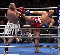 Filho kept up the pressure, and a frustrated Toa faded further and further out of the fight. The unanimous decision was a good way for Filho to end what had been a disappointing year in the K-1 ring -- in July he and Mike Bernardo went through the motions in a soporific slow dance that ended in a draw (although some thought both fighters should have been disqualified for lack of fighting spirit), and in October he lost to Stefan Leko. Japanese fans love Filho -- he got one of the loudest receptions of the night -- and it was great to see him back in good form.