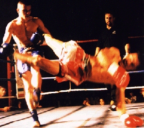 IKF Milwaukee, WI, USA In Milwaukee, America's colosseum of kickboxing, onlookers deem him as "Gladiator." Jason "Gladiator"Johnson (Right in photo) continued his reign of triumph before a sold-out crowd with a stunning win over Kansas City's Jeff "Big Diesel" Ford (L). Both Johnson and Ford have been touted as top American prospects, but tonight Johnson proved to be superior in a dramatic fashion. The first round was punctuated by Johnson landing an impressive head kick, which dropped the ever-formidable Ford. Ford beat the standing eight count and continued to fight back, but Johnson's knee attacks and kicks prevented Ford from establishing a consistent offense. Ford was valiant throughout the bout, but Johnson remained relentless, methodical. The bout was rightfully ended in the third round by referee Al Wichers ; Johnson was landing numerous kicks, punches, and knees on a seemingly unresponsive Ford. Below are the results from the action-packed undercard. Thanks to the sponsors and great fans for making this yet another spectacular "kaboom-kabap" evening of kickboxing! Don't miss Rumble in the Rave II, set for Saturday, March 24, 2001! Be sure to check the IKF News page or www.milwkick.com for more information. |