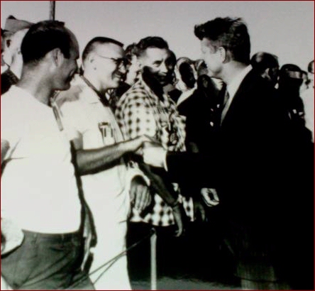 father shaking President J. F. Kennedy's hand.