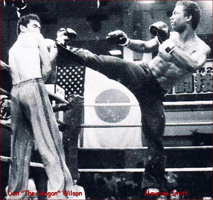 On May 15th, 1999 in Lowell, Massachusetts, USA at 45 years of age, 11 Time Kickboxing WORLD Champion Don "The Dragon" Wilson stepped back into the ring to fight for the vacant IKF Pro FCR Cruiserweight World Title against Dick Kimber for what is still this day, the highest kickboxing purse ever paid, $150,000.00 and some additional training expenses. Kimber swore to everyone that he'd have the fight over before the fifth round. However when the Dragon unloaded on Kimber in round three, Kimber dropped to the mat and referee Dan Stell counted him out on the floor. Kimber never stood during the count and to this date, Kimber never fought again. Having never been challenged for his title, Wilson voluntarily retired it several years later. | ||