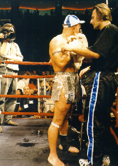 This event was the turning point as to how the IKF gets involved with Pro Purses. Before this event, the IKF had always trusted Promoters and Athletic Commissions when they assured them that the Purse money was honestly going to be paid. And why question these promoters who had already paid Don Wilson in full his $150,000.00 purse and Dick Kimber a $10,000 training fee in January. They had also already paid all the PPV deposits, the IKF helped greatly with the sanctioning fee expenses charging for 5 World Titles, 1 US Title and 6 Title Belts only $2,855.00. The Promoters had also already paid nearly $20,000 in plane tickets for fighters, officials and special guests as well. Although the Massachusetts State Athletic Commission assured the IKF that all the purse money was covered in the promoters license, it was a shock to EVERYONE after the event when none of the Fighters Checks could be cashed and ALL of the checks the promoter wrote to each of them all later BOUNCED! Rick Roufus (Left Below) was on top of the World After Defeating Stan Longinidis and winning his IKF World Title on Live PPV TV at Mass Destruction. However, it was the emotional trauma of not being paid his Purse that would quickly take him out of his winning ZONE! Although Roufus was paid $10,000 in training expenses up front, the Promoter never paid Roufus his actual purse of $91,000. YES, "$91,000!" After the event, promoters were no where to be found, leaving IKF President Steve Fossum alone in the arena with all the fighters and trainers trying to deal with things. The box office which Fossum was told by the promoters would cash everyone's check was closed and the Massachusetts State Athletic Commission had left the building. After an extensive search of the arena, Fossum found co-promoter Scott Haddad. Haddad who was discussing the un-paid purses with Roufus' manager and trainer in a private conference room. While the meeting took place, Dick Kimber (Pictured Below Left) came in and Haddad paid him $10,000 in cash right in front of Fossum, Roufus' manager and trainer. (Kimber had already received $20,000 for training fees around January of 1999 and demanded to be paid another $20,000 in cashiers checks only 3 hours before the event or he wouldn't fight. We were told later that the cashiers checks were for the other fighters. There were many issues that revolved around Kimber's pay as a possible partner of the promotion and when and how he was to be paid but these are all speculated or unconfirmed and now very hard to believe after we have seen the actions taken by the promoters to pay all the other fighters. ESPECIALLY hard to believe since Haddad never brought these issues up when he paid Kimber $10,000 in cash AFTER the event. ) Haddad apologized that he didn't have all the fighters "CASH" on hand but assured everyone their checks would clear that week. Of course... They never did. To make Haddad's credibility worse, he "FAKED" a phone conversation with co-promoter Phil Malonson acting as if Malonson was assuring him he could meet Roufus and Longinidis in the morning with their full purse. However, it was all a bunch of lies as no one ever met Roufus or his trainers or Longinidis the next day. The week after the event, only 2 checks cleared the bank. Curtis Bush's $2,500 purse and Juan Adams check for $1,000. Adams was a fighter who didn't even fight. Some time later, Kevin Rosier was paid half his $5,000 purse. In the end, who didn't get paid? Here's the list;